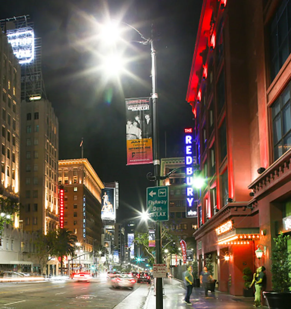 We have a beautiful apartment right next door to The Grove, a glamorous outdoor shopping centre that’s decked out like Disneyland for Christmas. Mills and I love it, but it’s nowhere near as flash as The Redbury, an old hotel in the heart of Hollywood, where my LA experience begins.