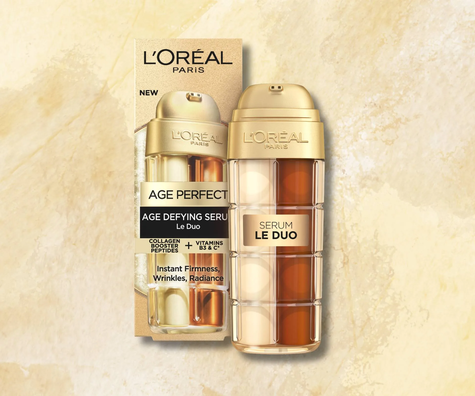 The new L’Oréal Paris Age Perfect Le Duo Cell Renewing Serum (RRP $69.99) uses two super-powered formulas to help reverse visible signs of ageing. One side is a collagen-rich serum that smooths wrinkles and sagging; the other is a hydrating, vitamin-packed blend that evens skin tone and boosts radiance.