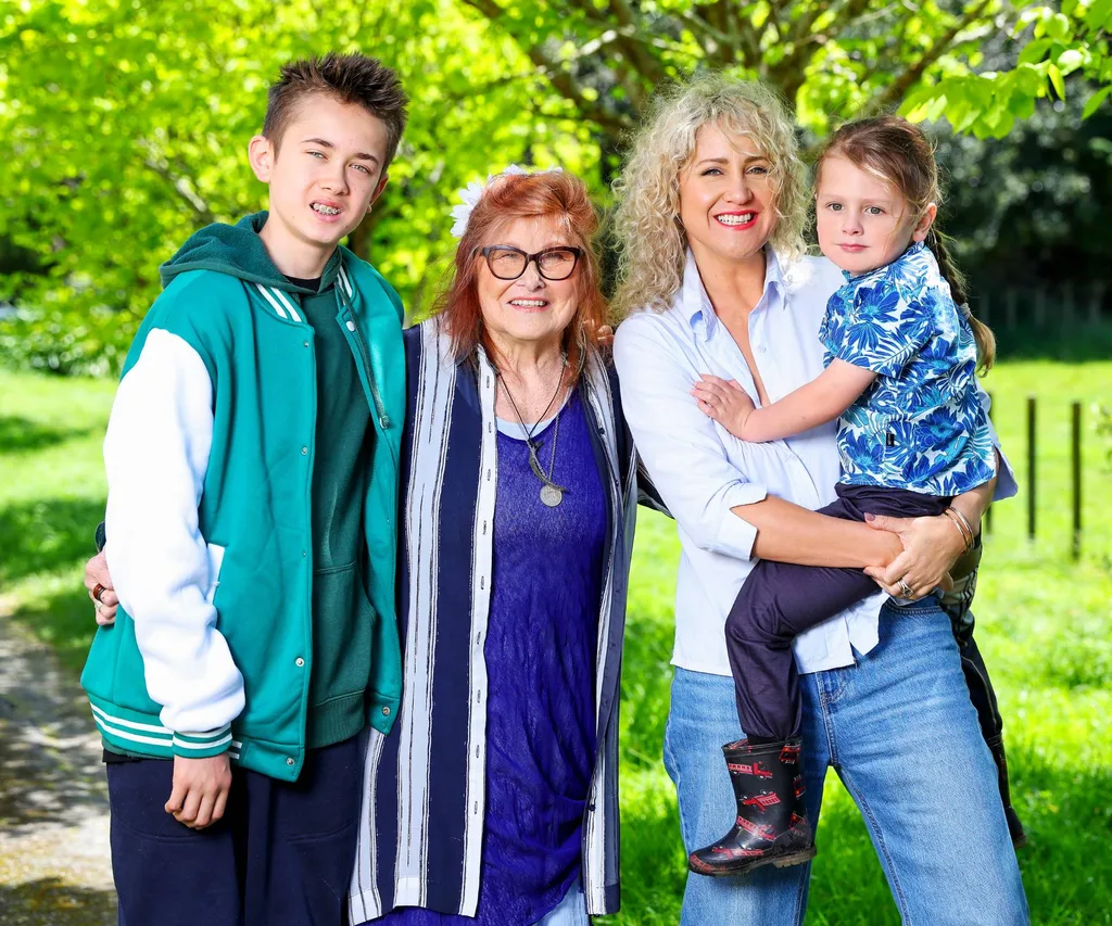 Her mum Chrissie is called over from her home 50m away and her 13-year-old son Emerson graciously joins in for the group family photo. It’s a fitting scene for the country singer-songwriter whose