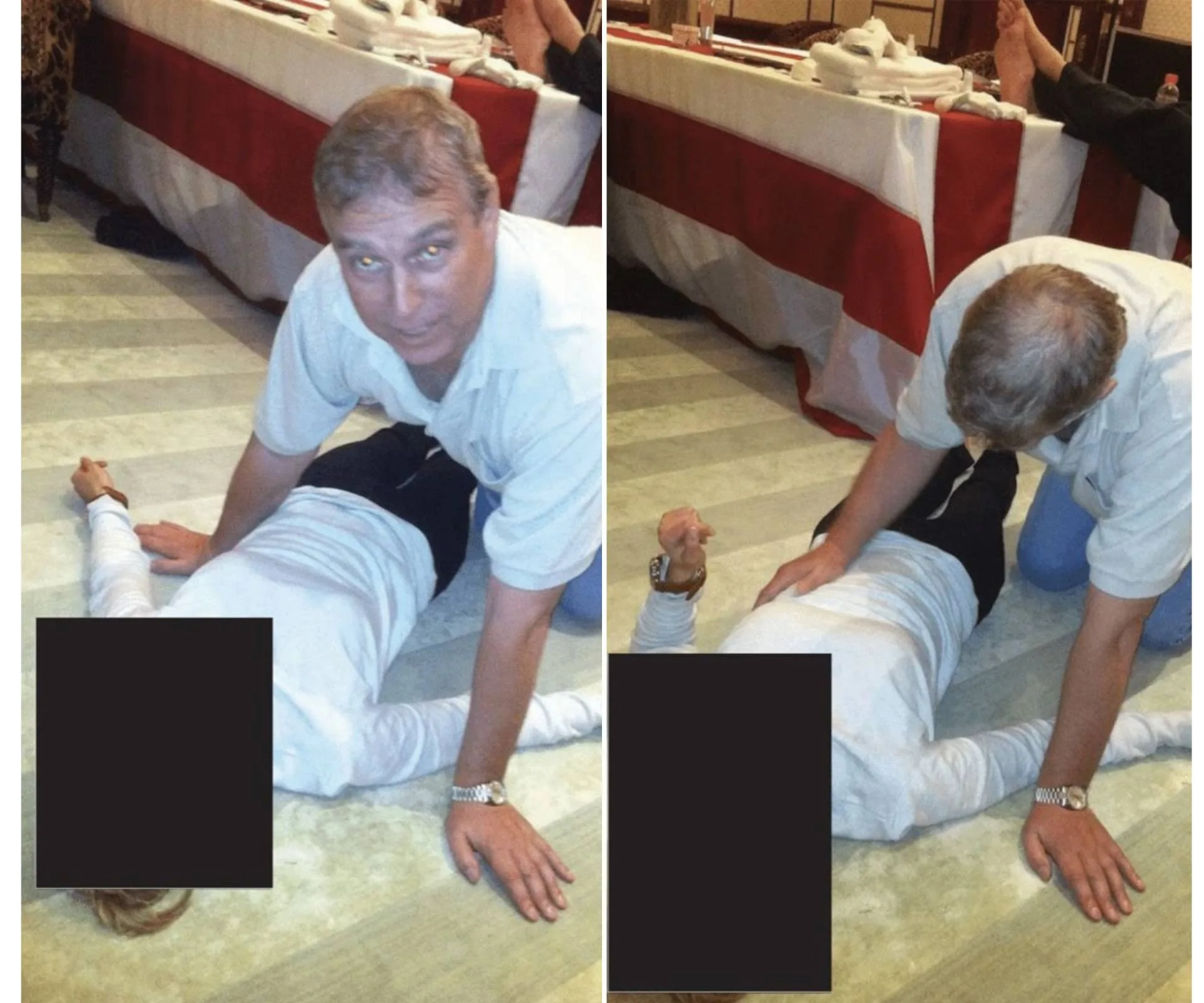 Among the items made public by the US Department of Justice were several disturbing photographs, which appear to show the former prince crouching over a woman lying on the floor. In two of the images, he is seen touching the woman, who is fully clothed, on the stomach. It’s not known when and where they were taken.