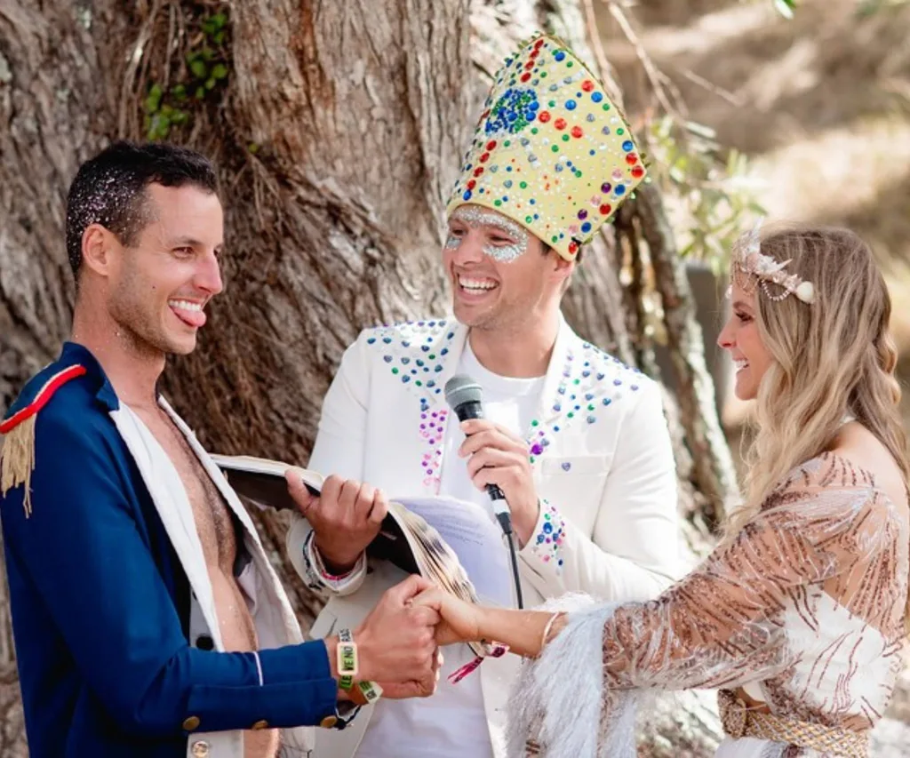 The couple’s love of music, dancing and a good party led to non-traditional nuptials at the Splore Festival.