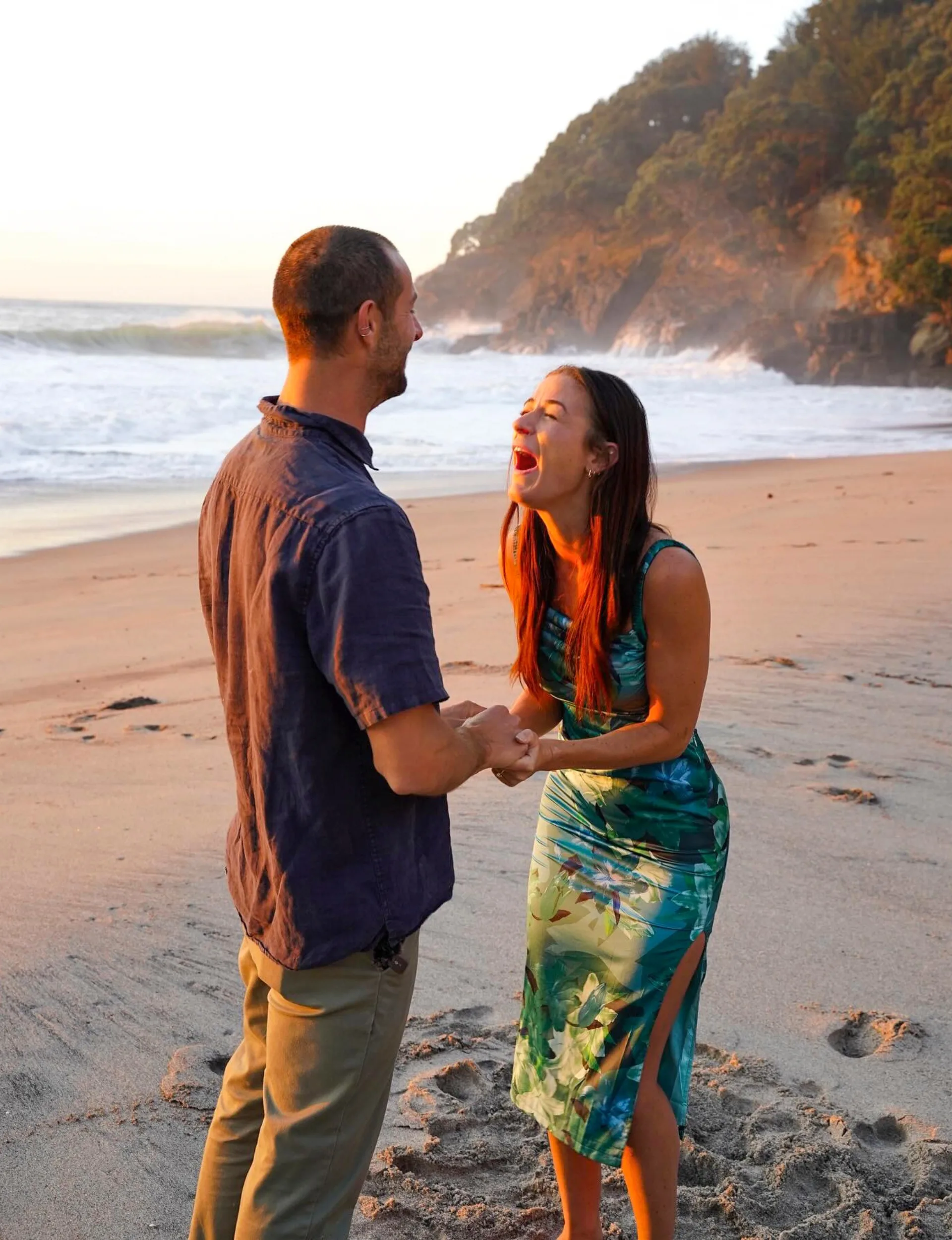 And just days later, it seems either the pressure got too much or the timing was right because after four years together, Scott put on a nice shirt and got down on bended knee at Waihi’s remote Homunga Bay, where he’d pretended they were meeting her photographer friend for a sunrise hike.