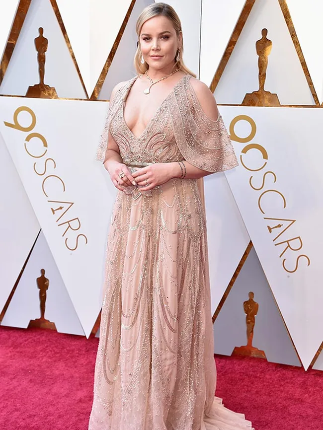 Australian actress Samara Weaving looks like a Grecian goddess in this dreamy peach ensemble. Will her film Three Billboards Outside Ebbing, Missouri win the Best Film gong?