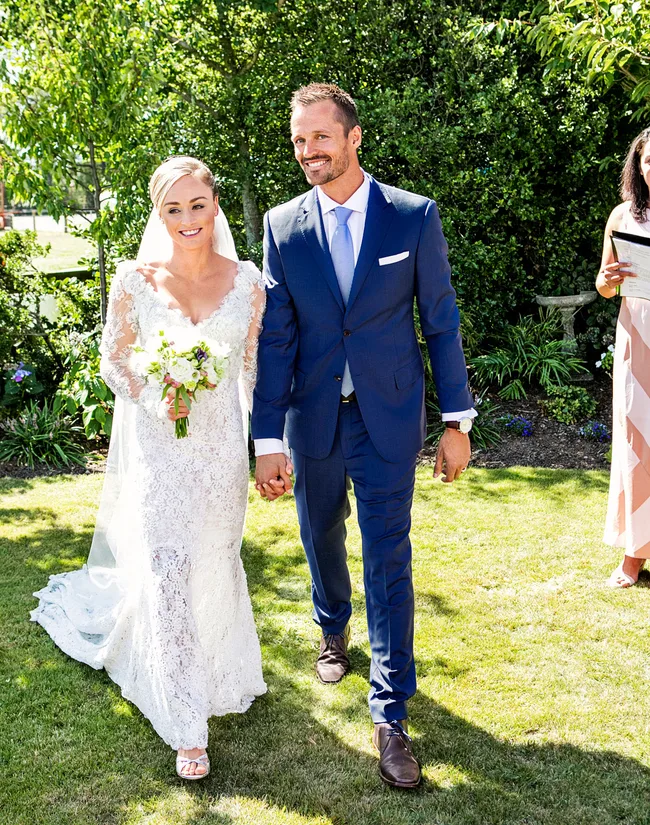 The possibility of hobbling down the aisle doesn’t faze Anita, 28, whose main goal for her big day is to keep it as fuss-free as possible. She has chosen to marry in the garden of the house she grew up in, to go without an official bridal party and to have the reception a leisurely half-paddock stroll from where the ceremony takes place. In fact, Anita and decathlete Scott have tailored every aspect of the day to be as low-stress – and personal – as possible. The only pressure Anita couldn’t avoid, however, was facing her fear of being stared at as she walked down the aisle. The Olympian has chosen an unlikely ballad for her big moment, “With Arms Wide Open” by heavy-metal band Creed, and has her doting dad Nick close to her side as she emerges into the sunlight.