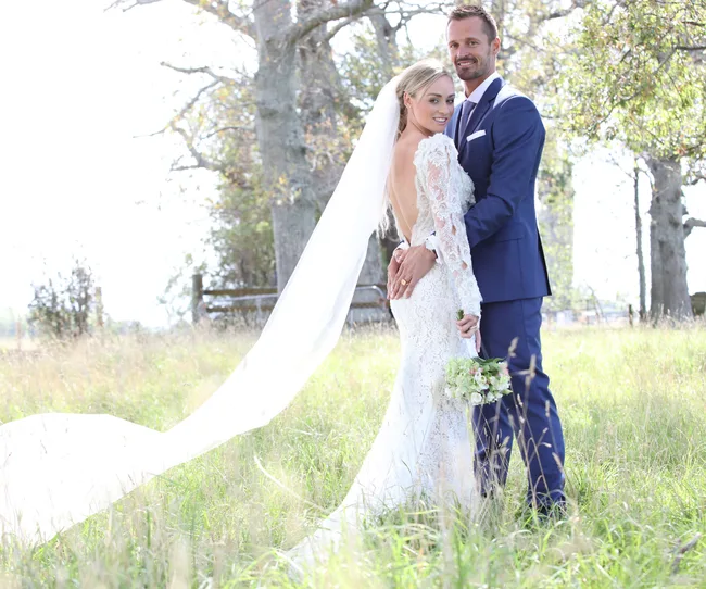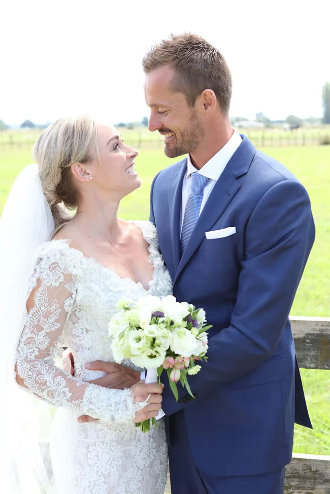 “I’m stoked that I can say I injured it running and not dancing in a paddock,” she laughs. “Nothing was going to upset me today, though. It’s been the most perfect day – totally relaxed, calm and exactly what I wanted. Now I just can’t wait to get on with our lives as husband and wife.”