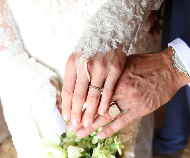 Then the groom shares a story from early on in their romance, which began when the two crossed paths during training for their respective sports. “I remember after she’d met my dad a few times, he said to me, ‘You hold on to her.’ It sounded like he thought I was going to mess it up, but last laugh is on you, Dad – I couldn’t be happier to have held on to her!”