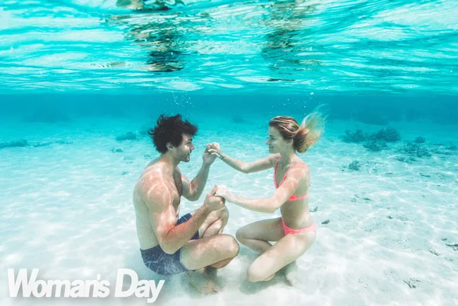 When Woman’s Day catches up with the happy pair almost three years on, they are fresh from another idyllic trip to the tropical island. They share the same honey glow and smitten smiles of two lovers who have just enjoyed five days of sun-soaked serenity abroad. But this time around, blonde beauty Matilda has returned with some very precious extra cargo – a diamond ring.