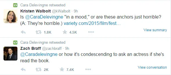 In the clip, Cara and the interviewers have a stilted conversation about the film and Cara’s role within it. The interviewers wrongly introduce her as ‘Carla’ and as the interview went on, they called her out for seeming less enthusiastic about the project.