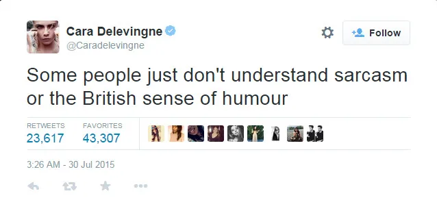 Now the model and actress has taken to Twitter to speak out about the incident, seemingly laying the blame on the hosts misunderstanding her ‘British humour’. She also retweeted several users who defended her behaviour during the interview.