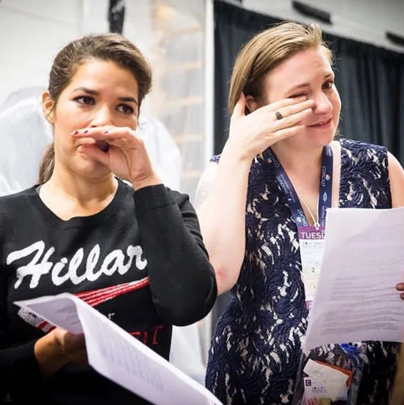 America Ferrera and Lena Dunham got emotional as they rehearsed their speech in support of Hillary.