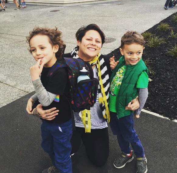 NZ’s newest chat show host Anika Moa sent her twins Taane and Barry off to school for the first time this week.