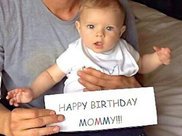 A very cute Axl sends out birthday wishes to mum Fergie with the help of dad.