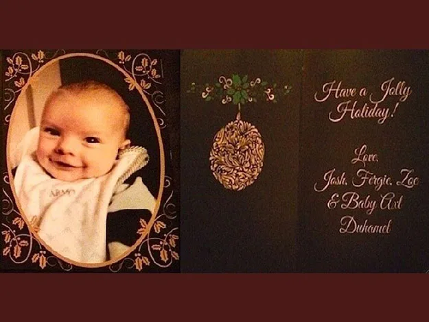 Clearly the apple of his parents eyes, little Axl in his bib featured as the centrepiece of their family Christmas card last year.