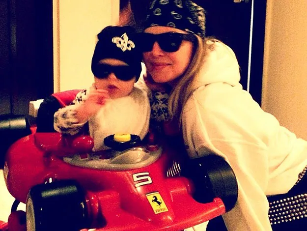 Mum Fergie teaches Axl about how to look swag while driving his Ferrari.
