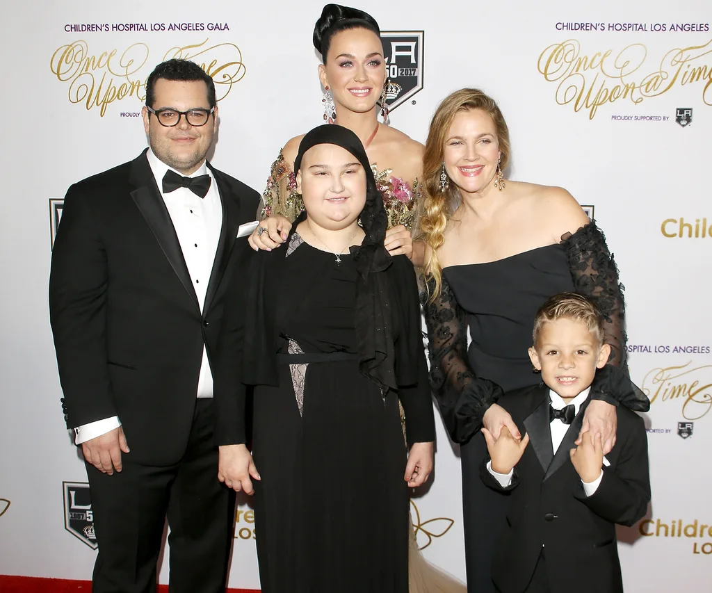 Drew, Katy and actor Josh Gad pose with two young guests at the gala. Photo: Getty