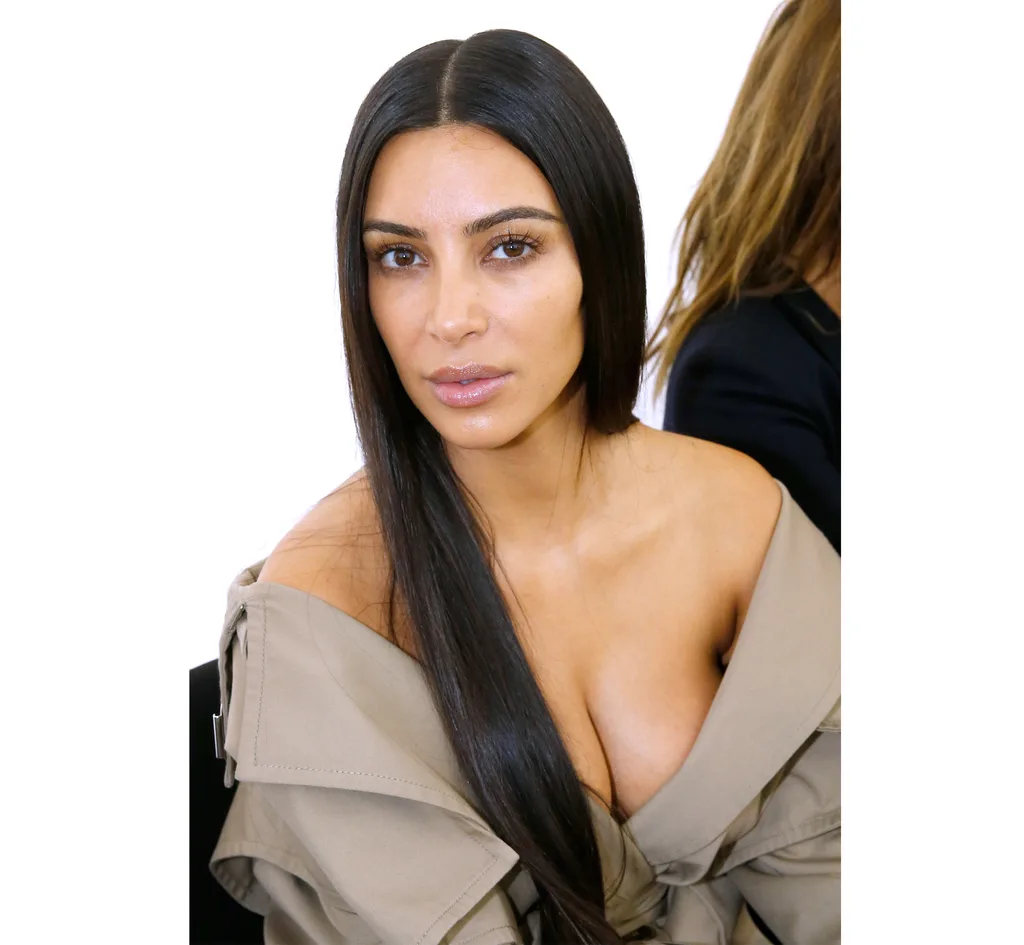 Kim went makeup-free at the Balenciaga show. Photo: Getty