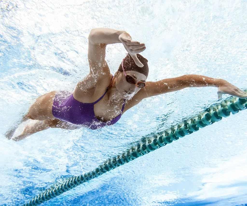 “I wanted to challenge the old-school training load of about 10 swims a week followed by two to three gym sessions,” she explains.