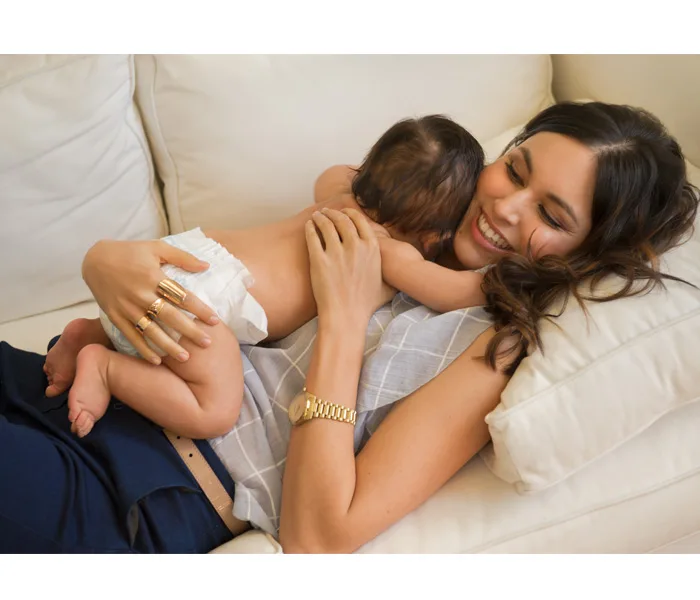 And with that, Bodhi and Bagrie return home from their sunshine stroll, and Lim slips from businesswoman to mum instantly, blowing raspberries on Bodhi’s stomach as Bagrie gets him changed.