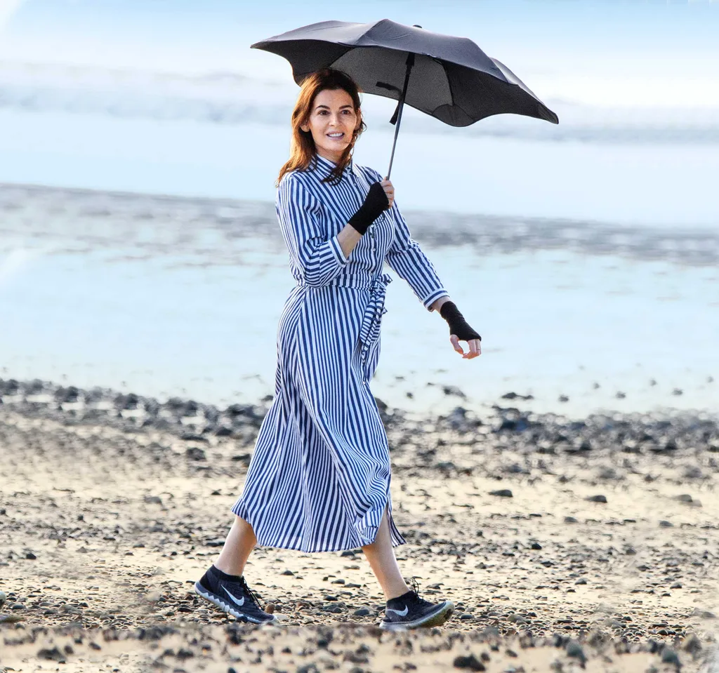 Making a stand under her umbrella on Waiheke in March 2018. “Even the feel of the sun makes me quite unwell, so it’s about listening to what my body tells me,” Nigella says.