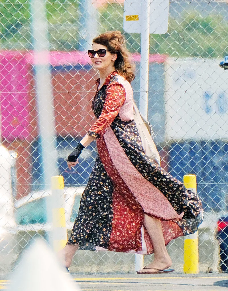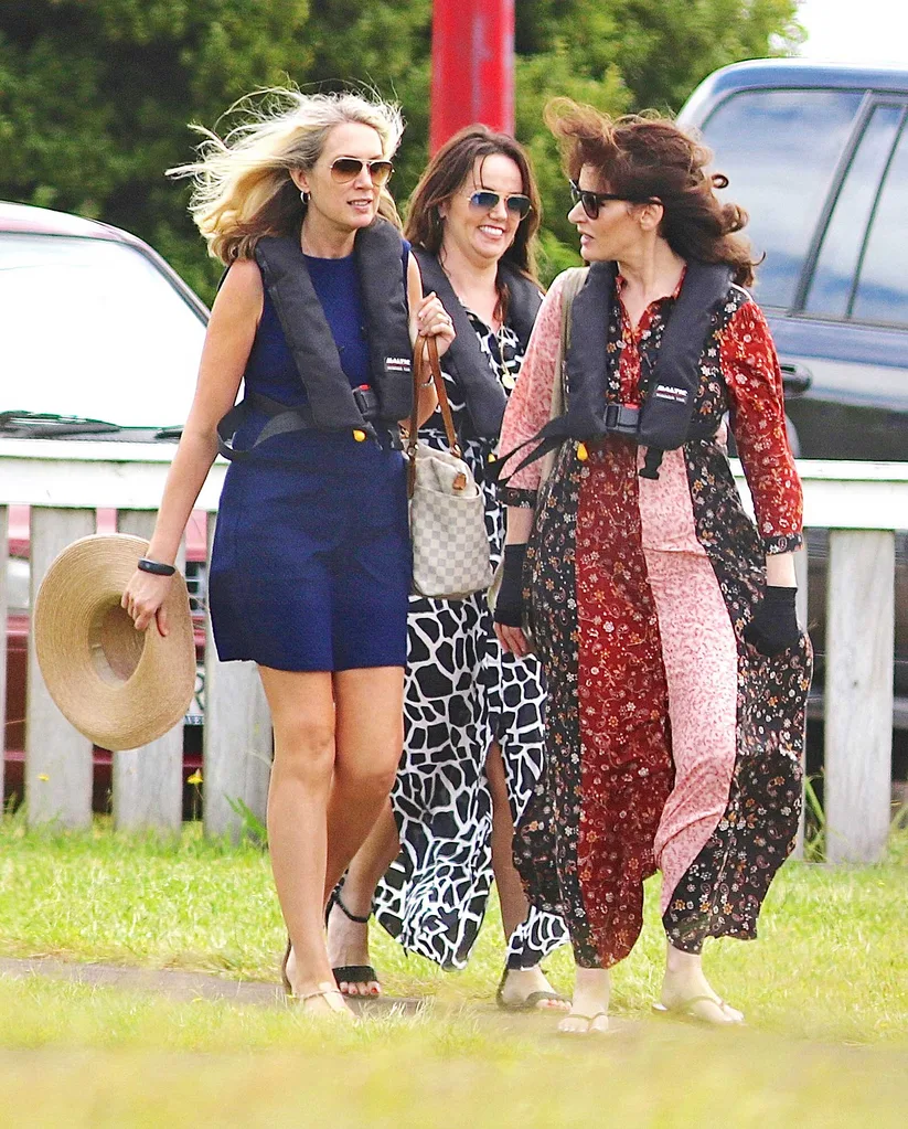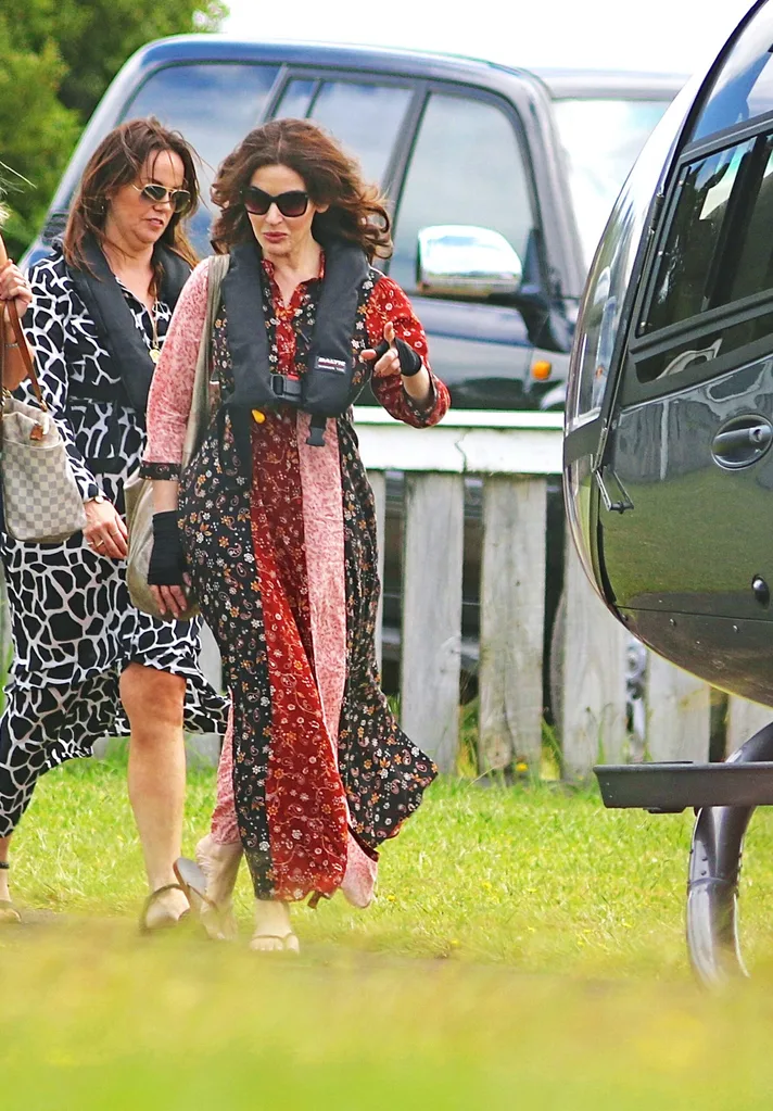 The domestic goddess – who says she’s “sun-phobic” and claims to have a mild allergy to sunshine – was all covered up in a long-sleeved, full-length dress and fingerless gloves as she joined her assistant and make-up artist for a trip to Waiheke Island by helicopter.