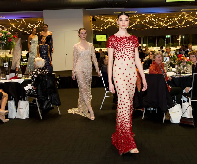Attendees wined and dined in style while viewing the spring collections of Trish Peng, Adrian Hailwood, Tanya Carlson, Yvonne Bennetti and Knuefermann in between races, chowing down on a three-course meal and taking home a luxe goodie bag at the end of the night.