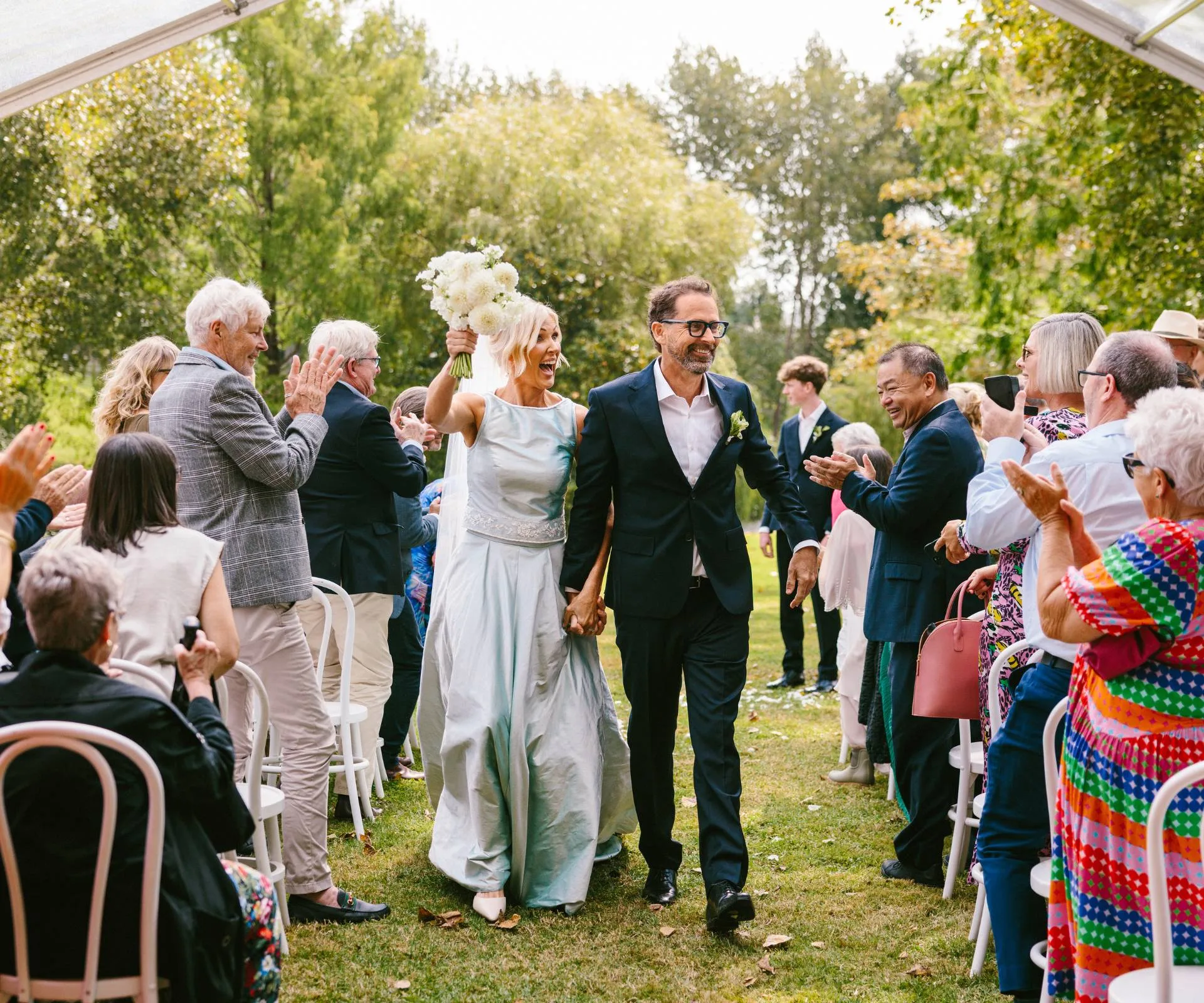 Close friend and celebrant Sophia Malthus led the ceremony, sharing the couple’s love story and speaking of their compatibility, shared values and mutual commitment to making a difference in the world. Sophia, who became a tetraplegic after falling from a racehorse, reflected on Dave’s long-standing involvement with the CatWalk Trust. The trust funds spinal cord injury research in New Zealand. She also highlighted Rachel’s advocacy through The Medicine Gap, her campaign to address the country’s underfunded medicines crisis.