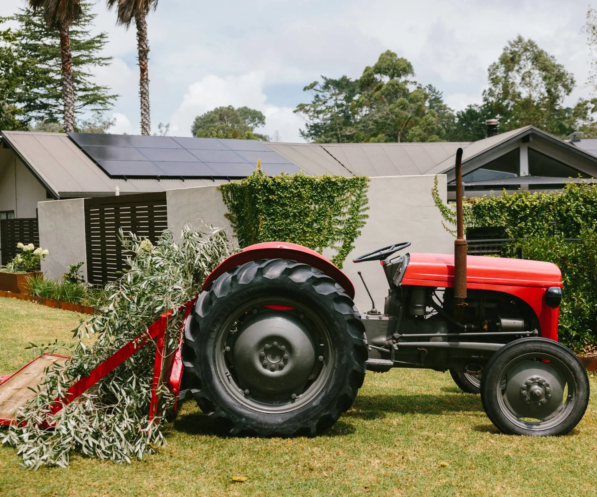 One important detail remained – moving Rachel’s beloved vintage Massey Ferguson tractor into place to be transformed into a drinks station.