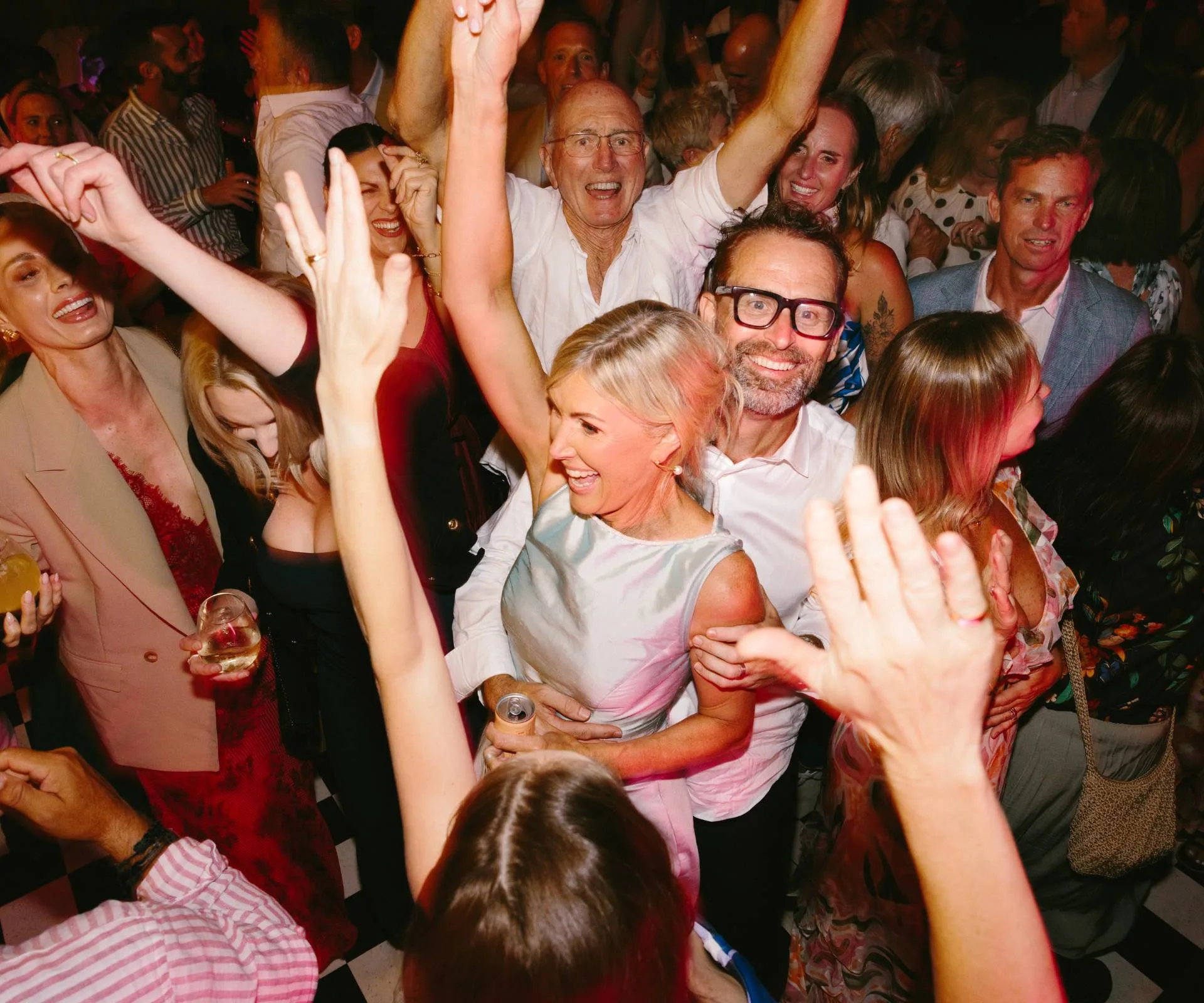 After dinner and speeches, it was time for the wedding party to move into the barn. The barn was beautifully decorated with festoon lights and a checkerboard dance floor. Hit Kiwi DJ duo Sweet Mix Kids provided the music. At 9pm, fries were served to keep energy levels high. The dance floor stayed lively until midnight. Throughout it all, the newlyweds were at the centre of the celebration, enjoying every moment.