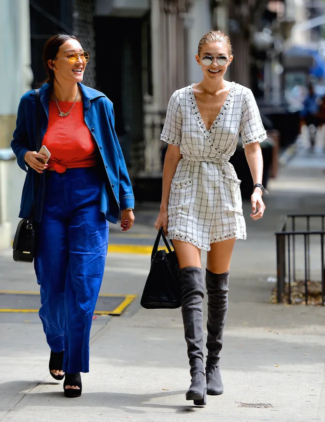 Gigi Hadid walks with a pal in Manhattan.