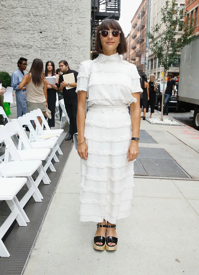 Rashida Jones dons a ruffled top and matching skirt to sit front row at Rachel Comey’s presentation during New York Fashion Week.