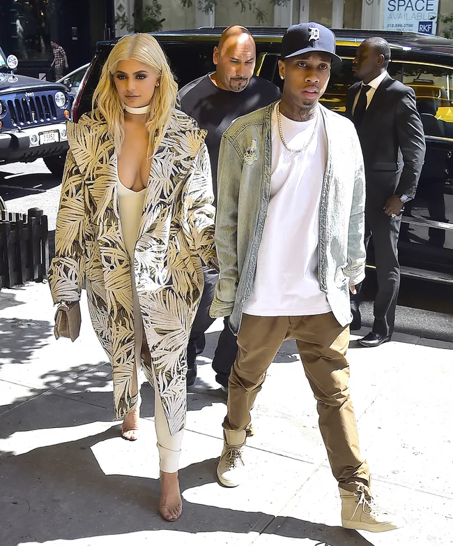Kylie Jenner debuts her newly platinum blonde hair as she takes a stroll with Tyga.