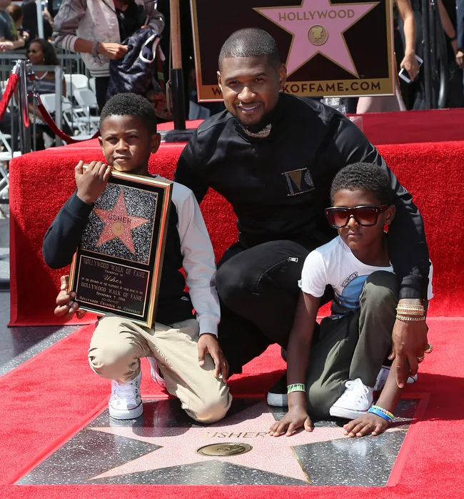 Usher is flanked by his sons as he receives his star on the Hollywood Walk of Fame.