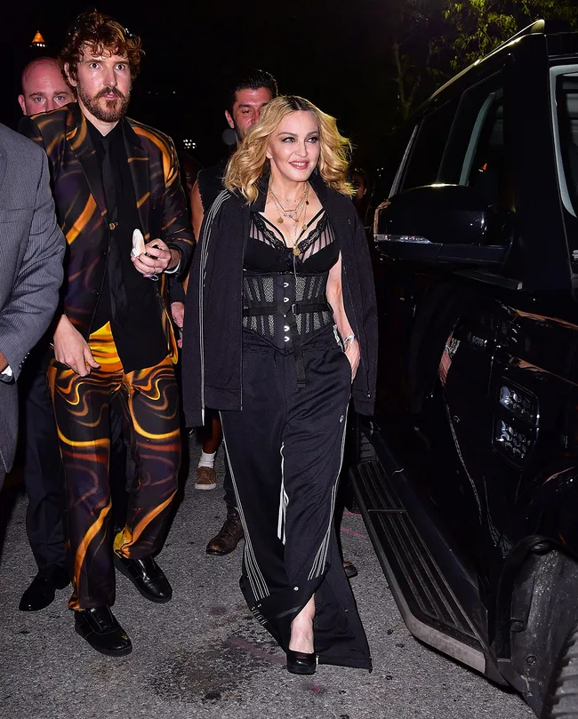 Madonna arrives at the Alexander Wang show.