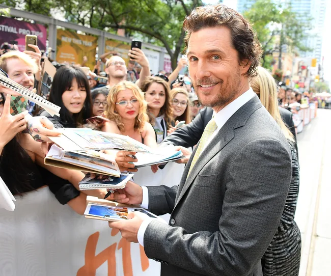 Matthew McConaughey signs autographs at the Sing premiere at the Toronto International Film Festival.