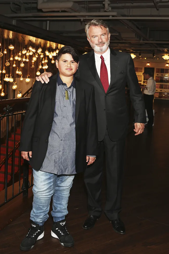 Sam Neill and Julian Dennison pose for a photo at a gala screening of Hunt for the Wilderpeople in London. Photo by Dave J. Hogan/Getty Images