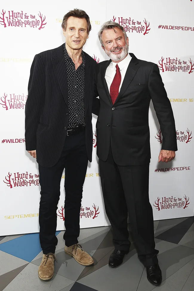 Sam Neill and Liam Neeson at the Hunt for the Wilderpeople screening. Photo by Dave J. Hogan/Getty Images