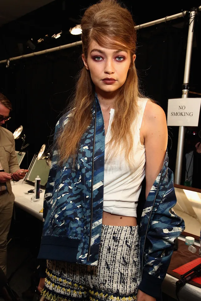 Gigi Hadid is snapped backstage at the Anna Sui fashion show.