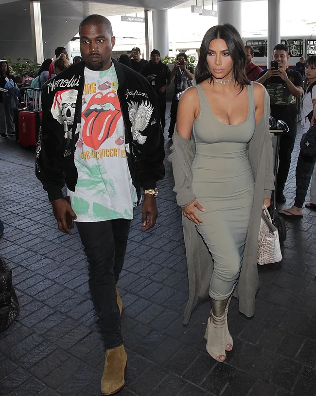 Kanye wasn’t far behind but it seemed the couple were not about to smile for their waiting fans.