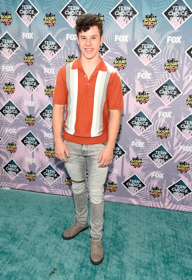 Modern Family star Nolan Gould keeps it casual in a polo shirt and jeans.