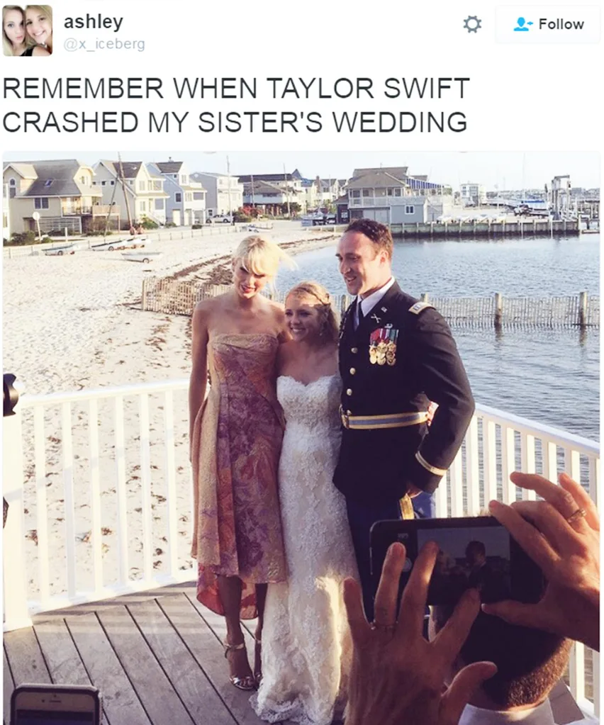 While this wasn’t the first time Taylor has assumed the role of wedding crasher, it certainly was the first this year since her split from Calvin Harris last week.