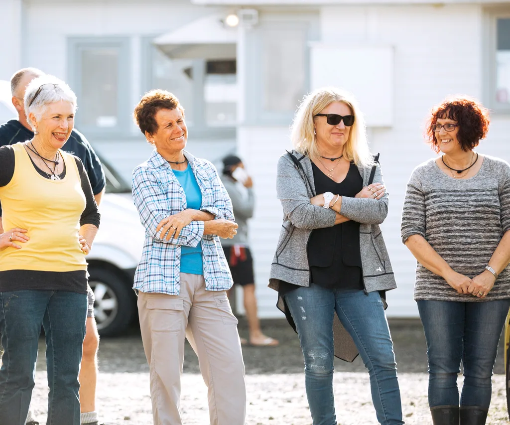 Julie on The Block NZ site with Niki’s mum Lisa Pasalic (far left) and Courtney’s mother Sandra MacKay.