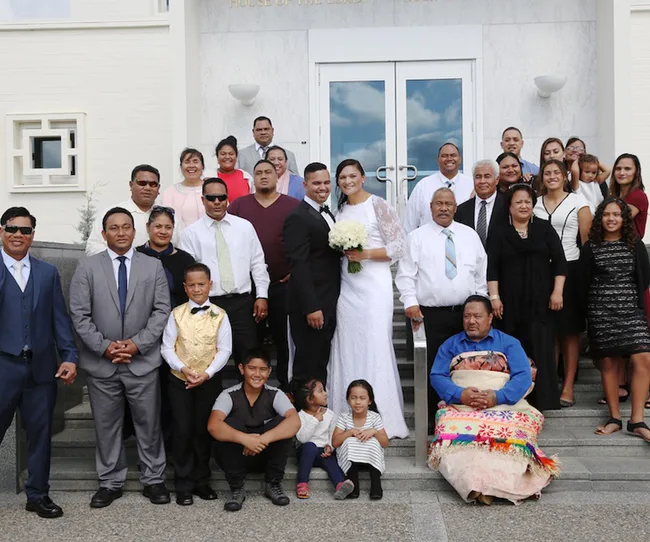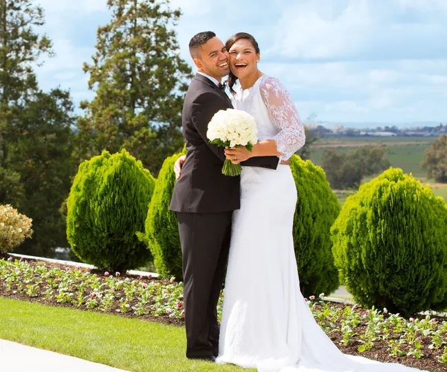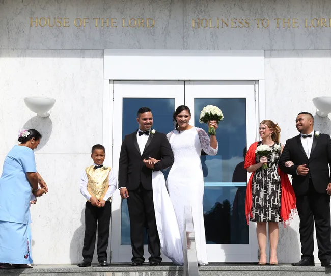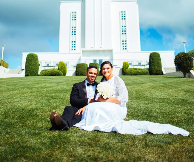 Valerie and Gabriel, both 31, wed in the Mormon church atop the hill in Hamilton’s Temple View.