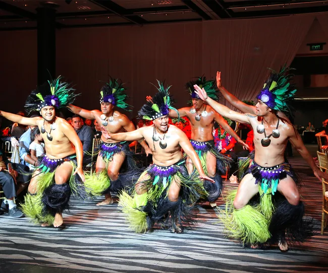 Valerie’s namesake niece Val performs a traditional tau’olunga dance in front of gifts for the bride and groom.