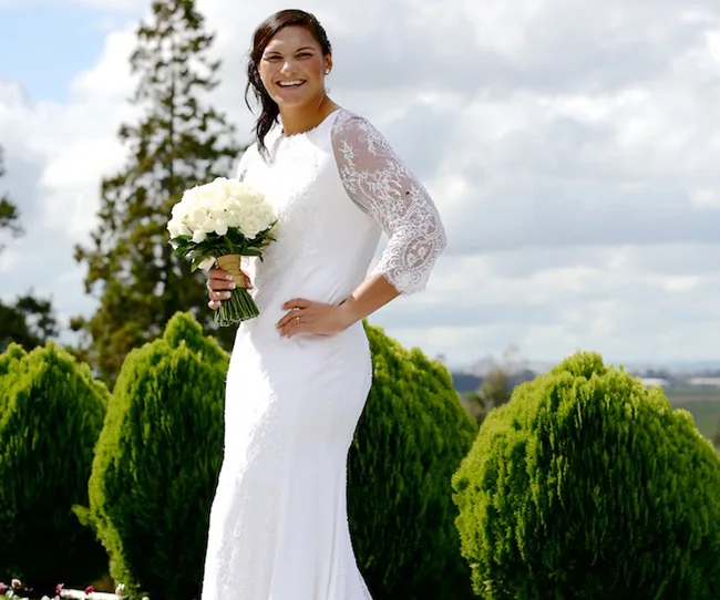 However, nothing shines so brightly as our Kiwi golden girl’s smile following the traditional sealing ceremony in which she and Gabriel were named husband and wife in front of 30 devout friends and family members.