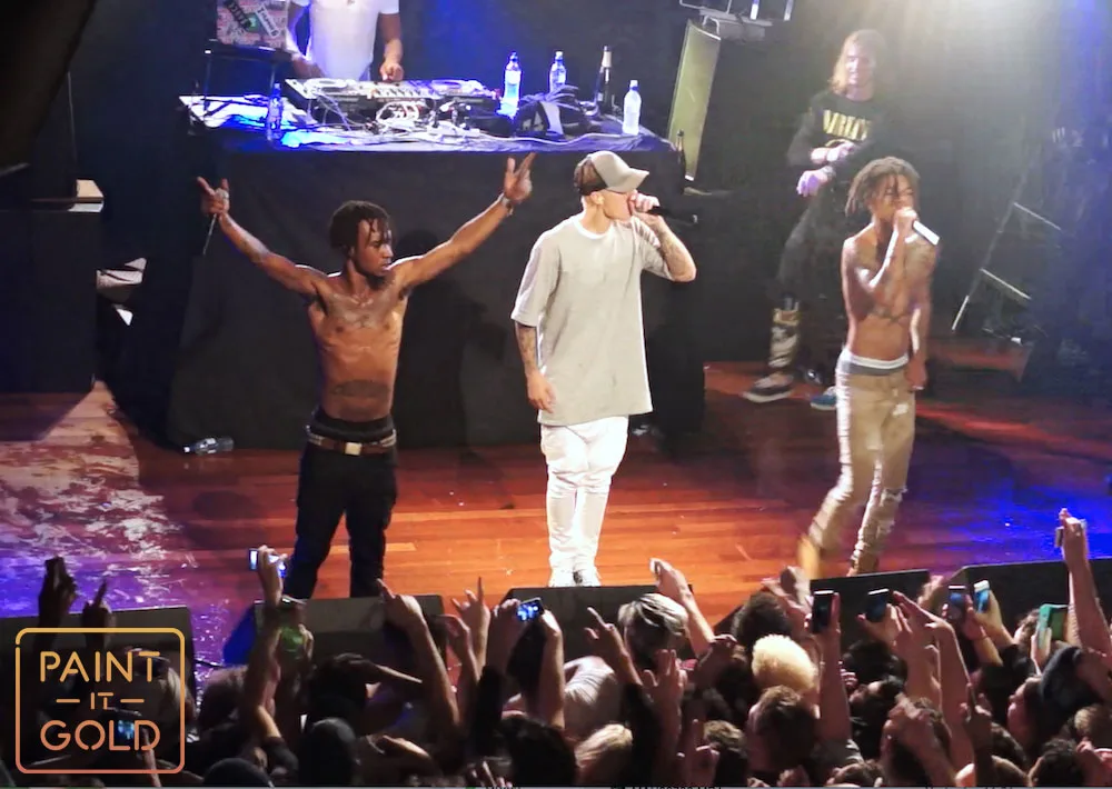 Justin Bieber with hip hop group Rae Sremmurd. Photo: Paint It Gold