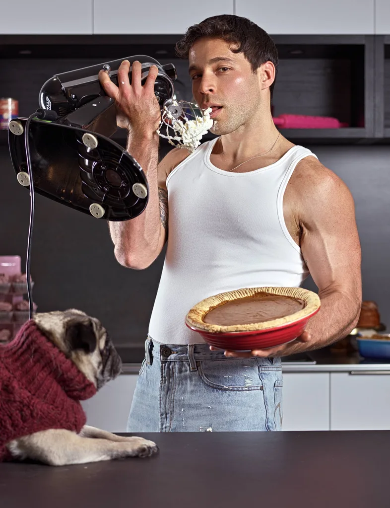 Having adopted Fraser, now seven, in 2018, after a break-up that saw his ex-girlfriend take their pug Marvin, he’s now an indispensable sidekick, helping drive the success of Man Can Cook NZ by boosting his owner’s confidence.