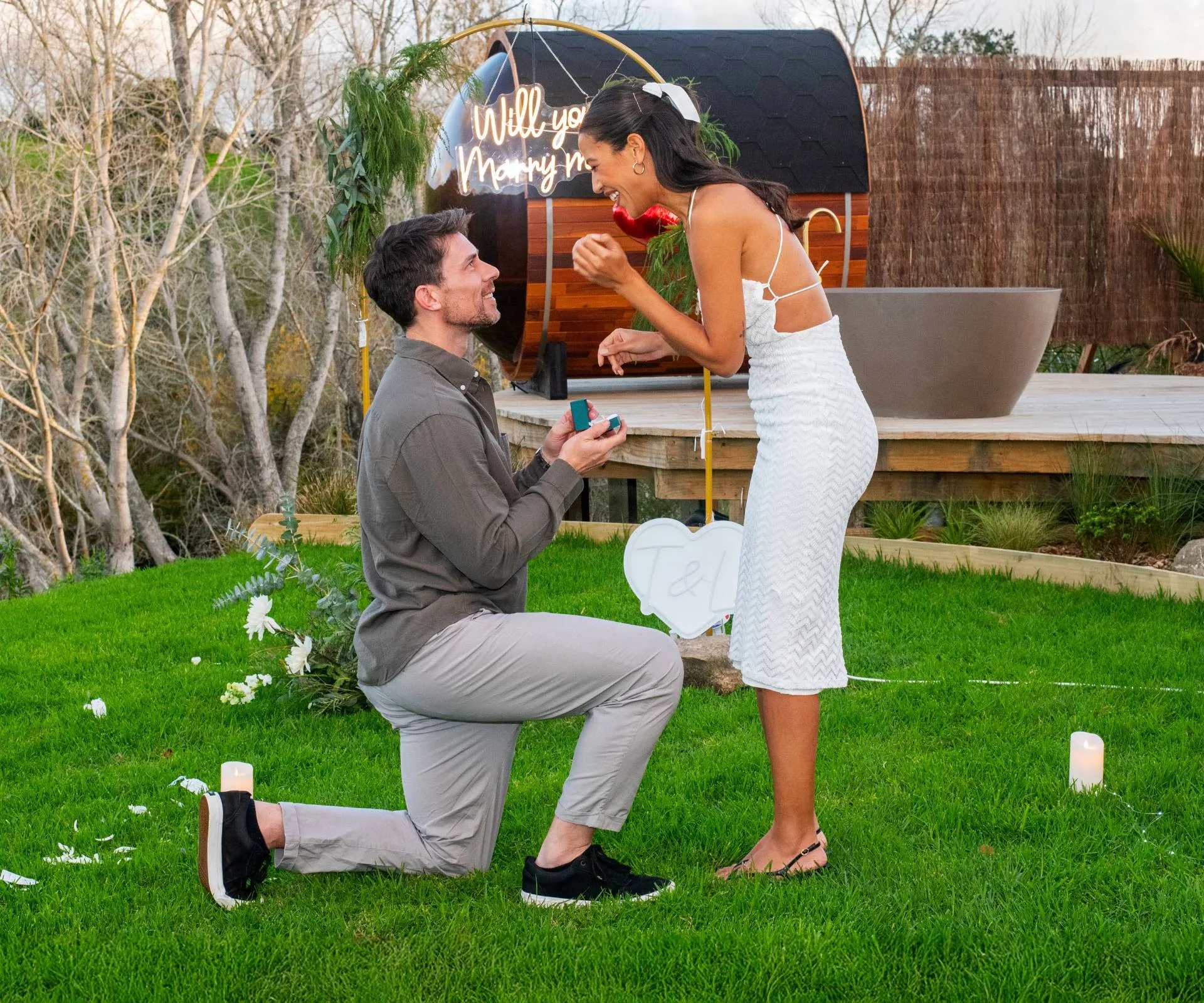 Having discussed marriage, Lesina knew a proposal was coming when Tom asked her to get ready for a surprise outing. An awkward 40-minute drive to Raglan followed.