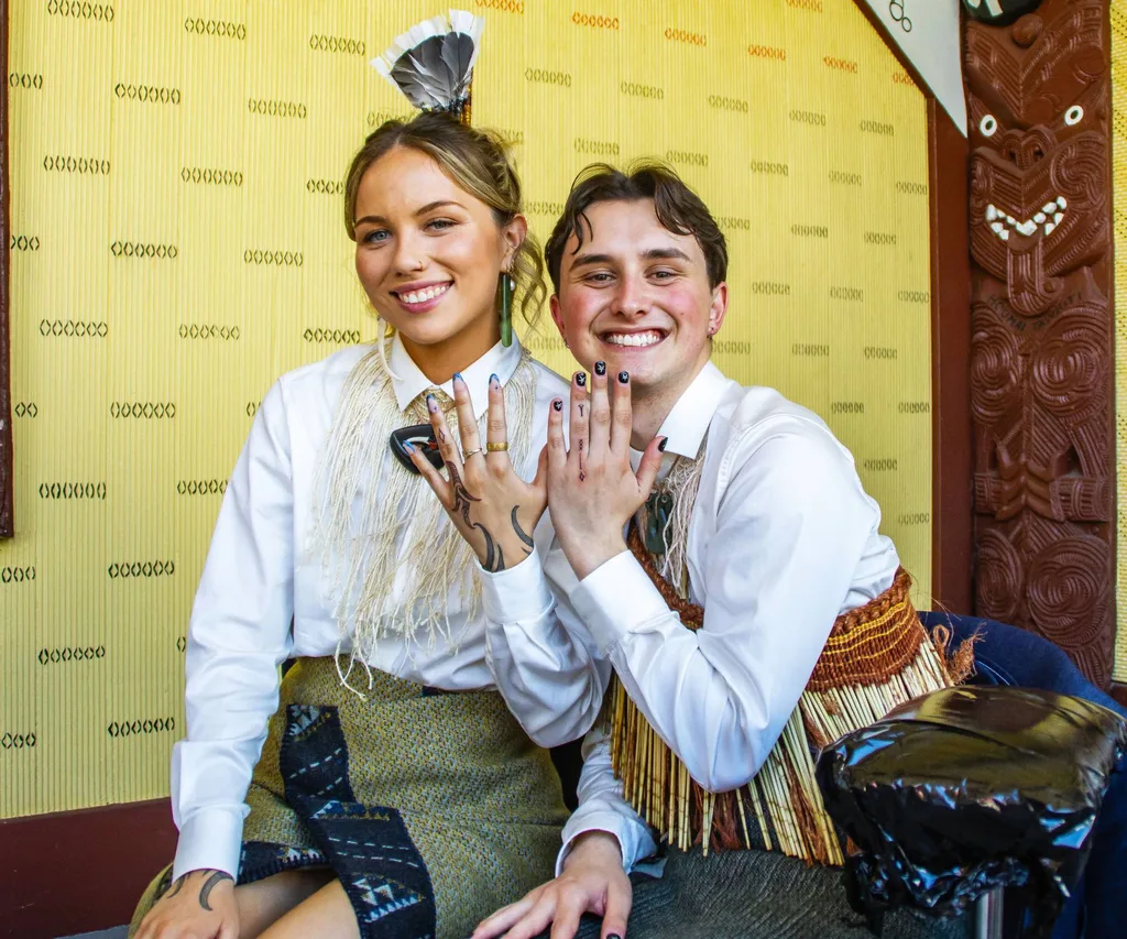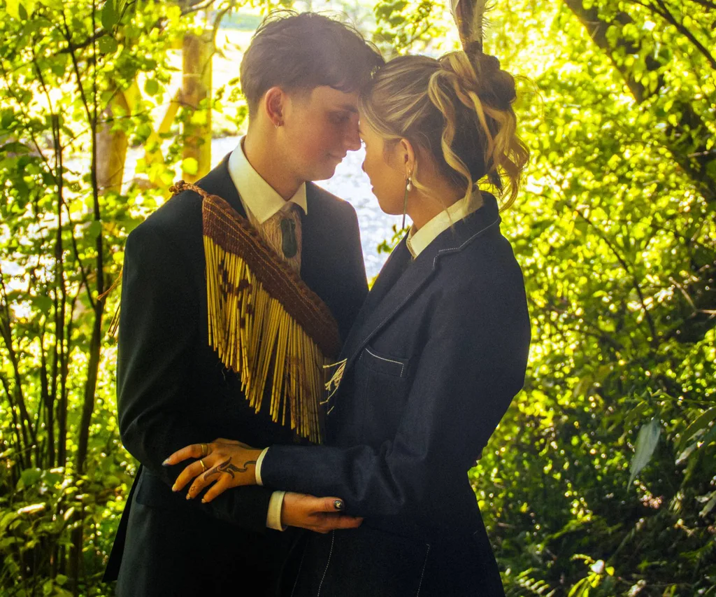 Both Huia and Reon, who met through mutual friends in the arts community in 2023, are the first generation of their families to reclaim the Māori language and chose to have their ceremony conducted entirely in te reo.
