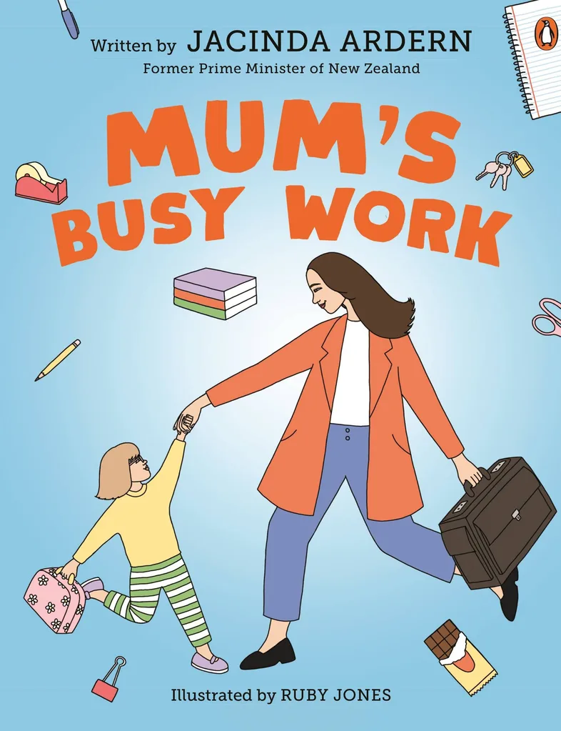 Mum’s Busy Work by Jacinda Ardern is available to buy at Paper Plus, Mighty Ape, and Amazon.