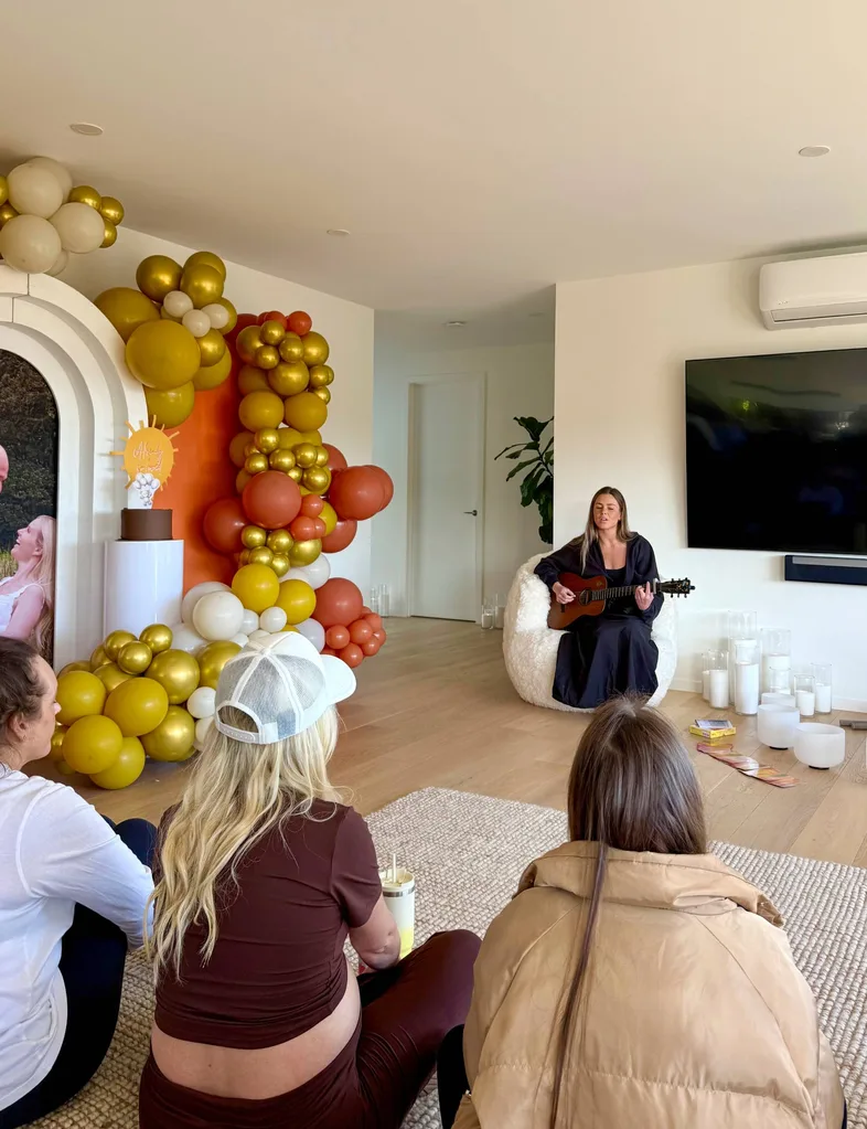 There was hot coffee, a candlelit entrance, a cleansing ceremony, meditation, flower essences and a sound bath. We ate pancakes and bagels, and drank probiotic sodas, and made guesses on the baby’s sex (most predicted a boy) and birth date. We also enjoyed a special performance from award-winning Kiwi popstar and The Voice Australia contestant Cassie Henderson.